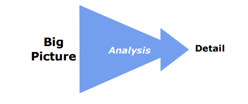 As a business analyst we can often be caught between giving the business user what they want and knowing what the company is (or is not) able to deliver. Herein lies one of the greatest traps the analyst can fall into – designing the solution before they’ve understood the problem. It is very difficult to gather information on requirements – without starting to design a solution. It is often hard to distinguish between a requirement and a solution as both look like similar functions. However we must stop and think about what we are doing in the context of the big picture. Analysis breaks something that already exists down into its components to so we can understand how it works (or doesn’t work).